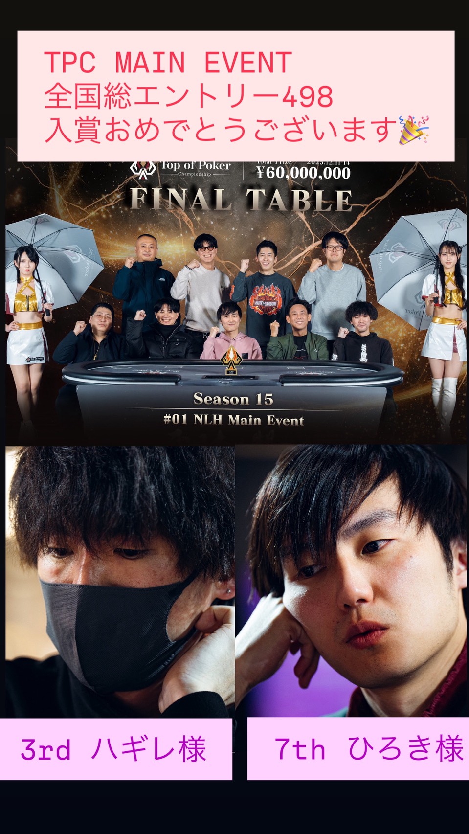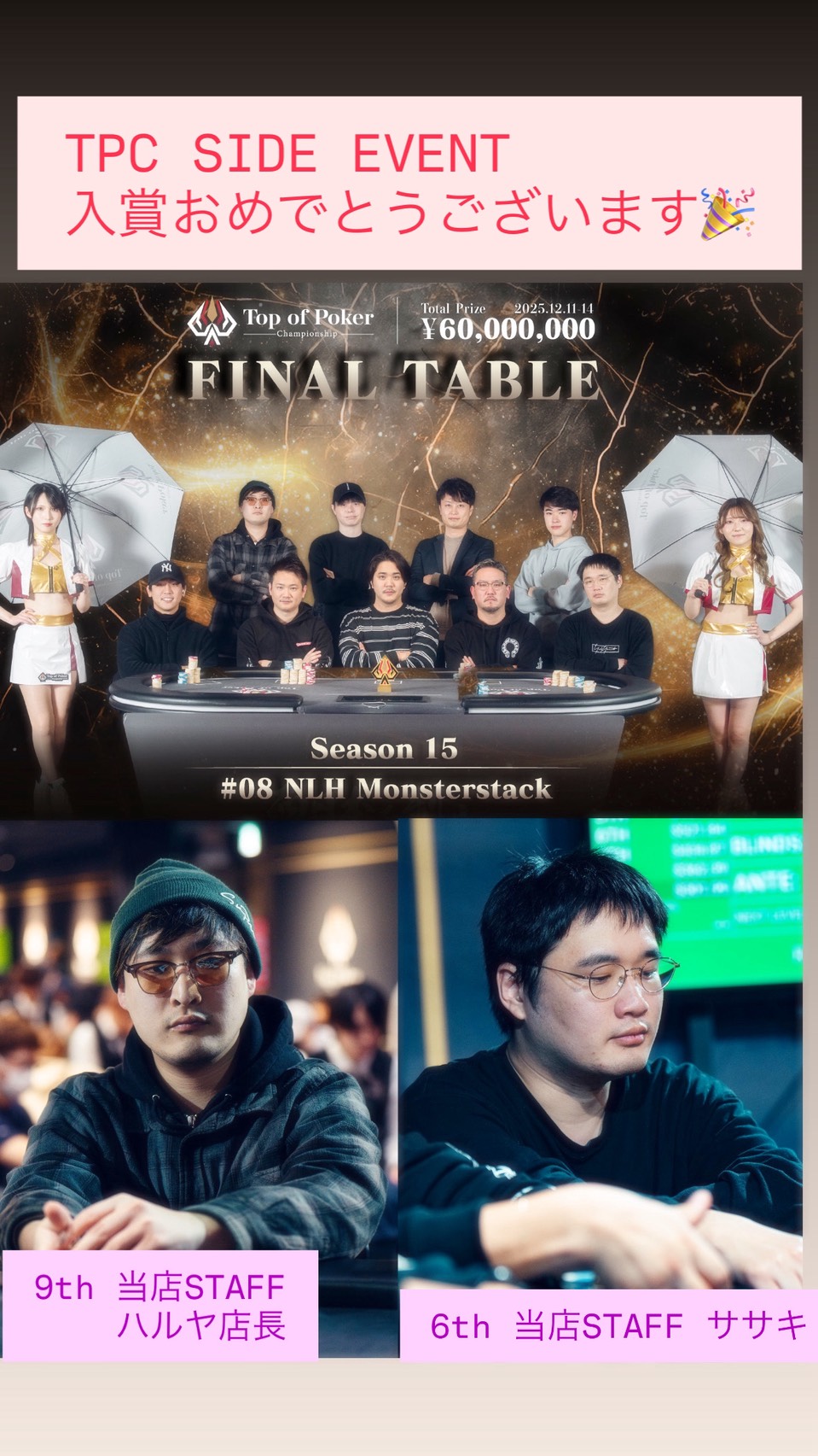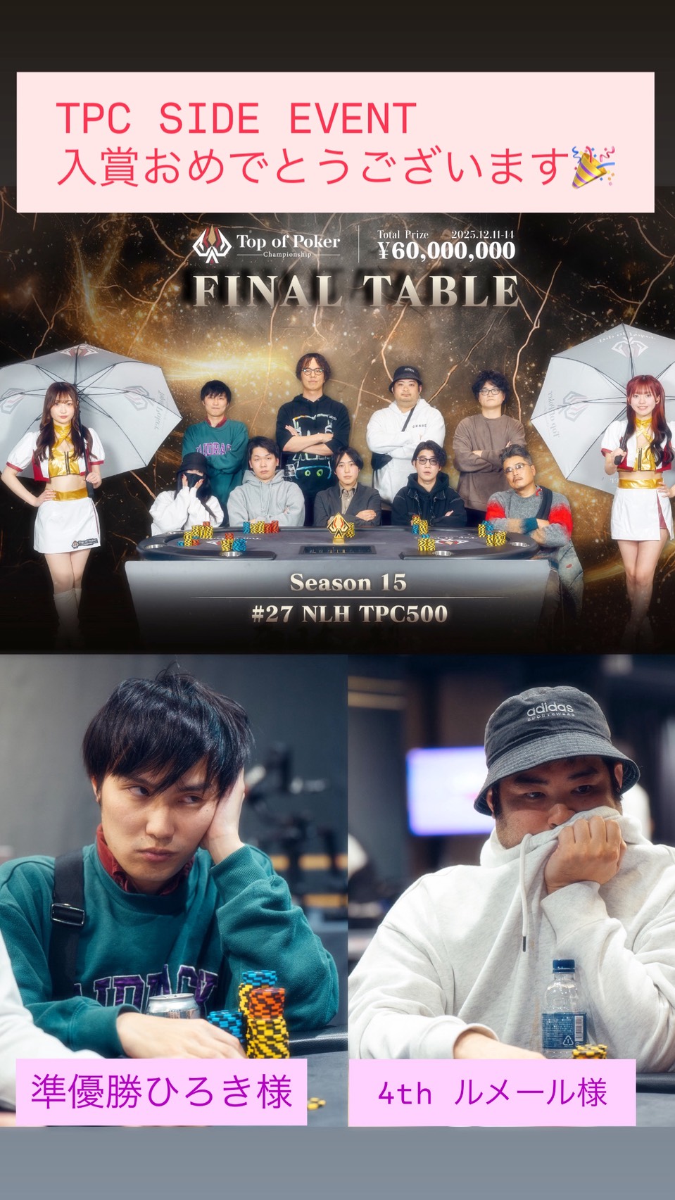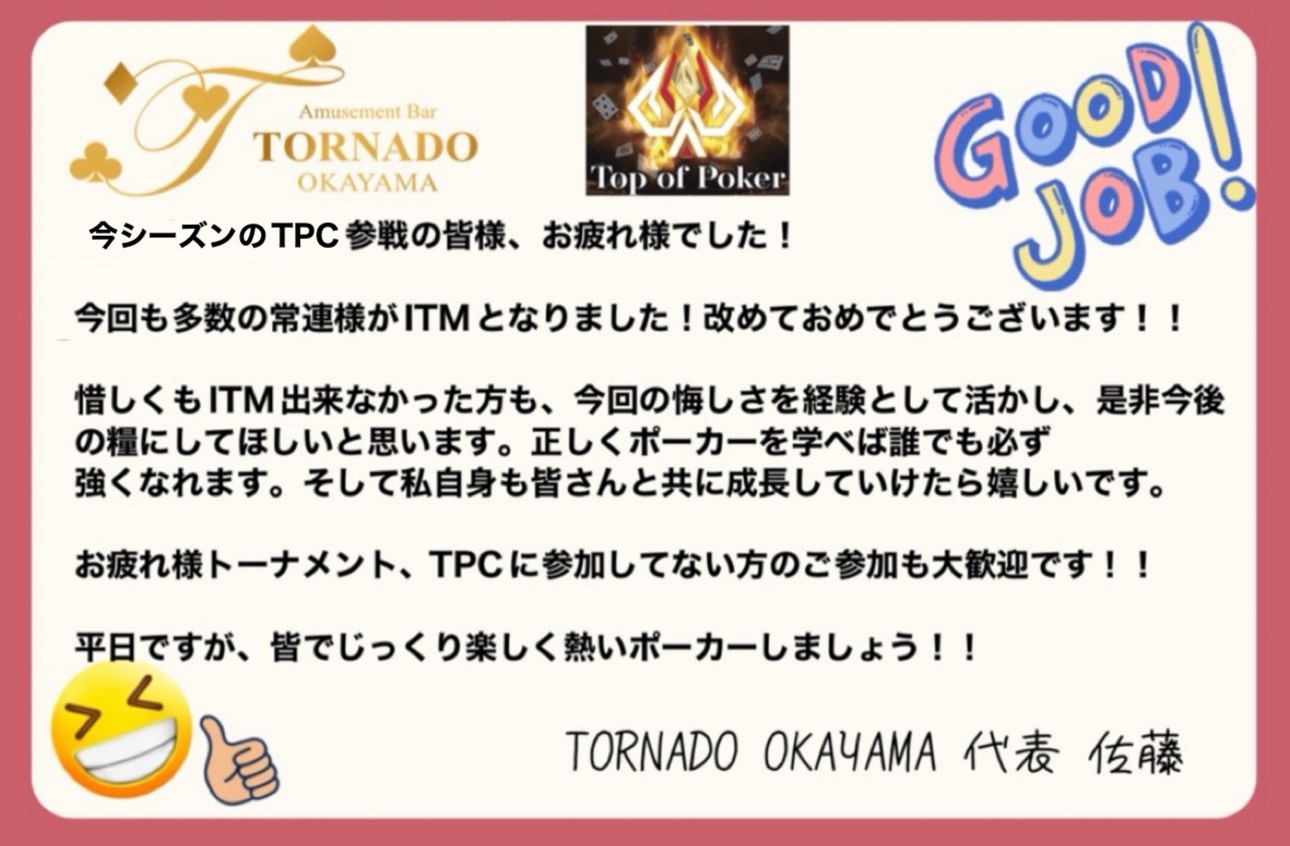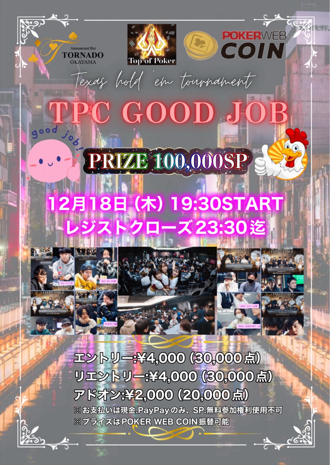 TPCお疲れ様トーナメント。プライズ総額100,000SP プライズはPOKER WEB COINに振替も可能