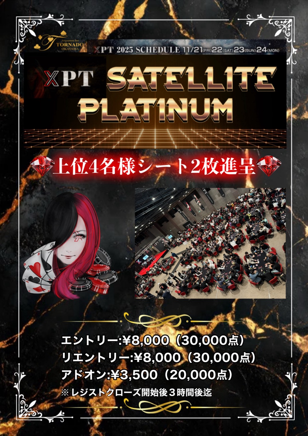 全国規模のBIGイベント 【XPT】 のサテライトトーナメントです。 シートを獲得すると本選のDAY1に出場出来ます。
