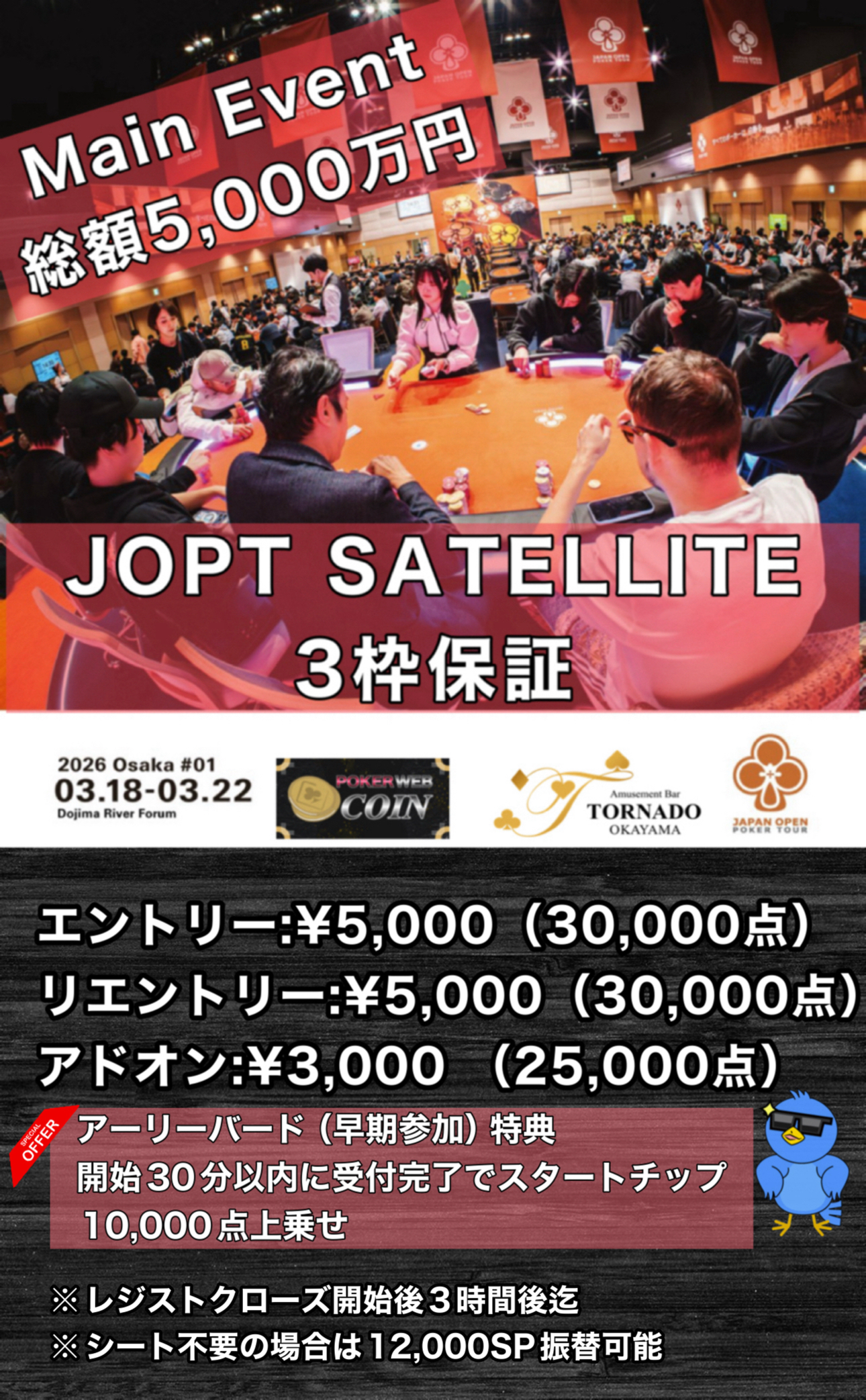 JOPTは2026年もアツイ!!東京メインイベント1億円、大阪メインイベント5,000万円! トルネード岡山でサテライト開催決定!皆で会場へ行きましょう!